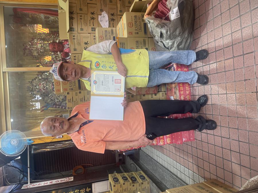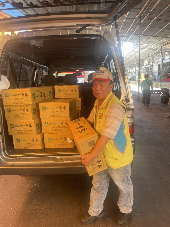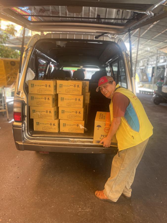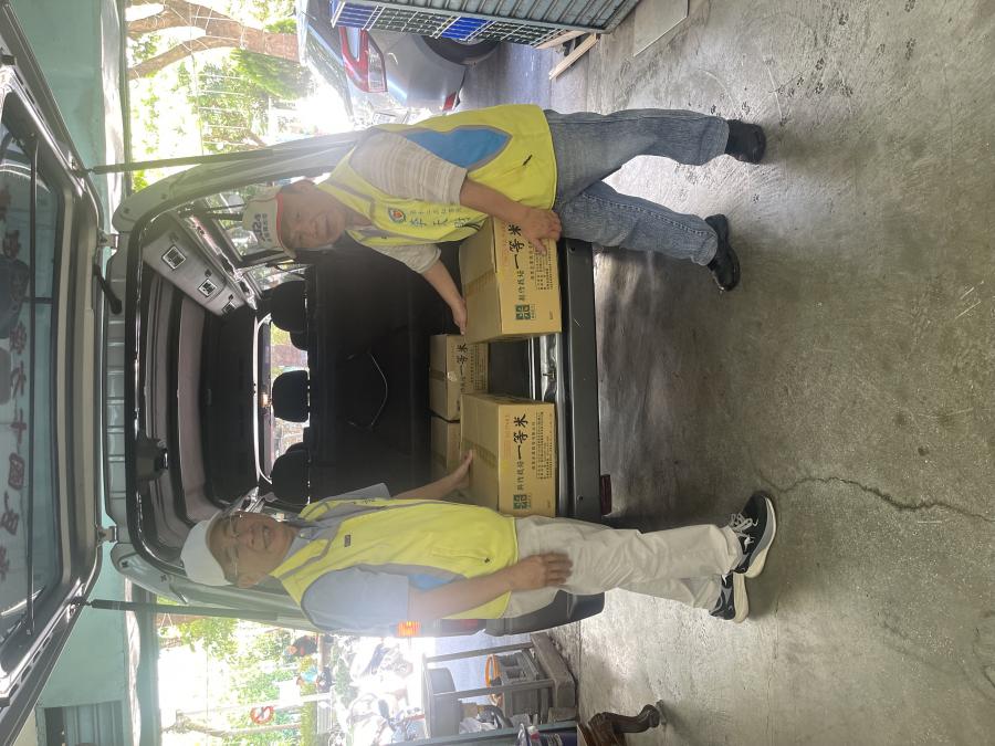 至新北市聖賢功德會(三重區力行路)載白米480斤、沙拉油4箱回會所