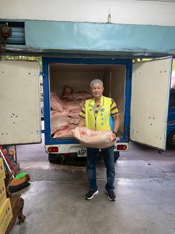 到台北市雙境廟(台北市中山區)載白米約3600斤回會所