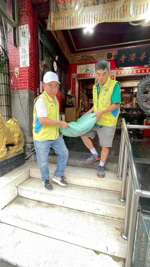 到台北市中山區 梵天閣「四面佛」(松江路)載白米800斤 [20斤/40袋] 及 普濟寺(華陰街)載白米150斤 [3斤/50包],回會所