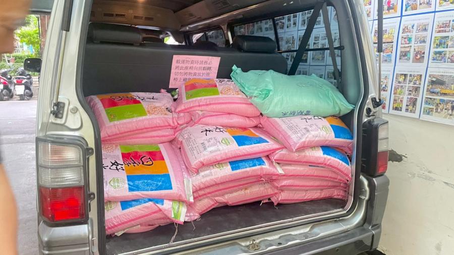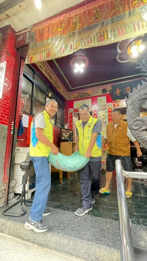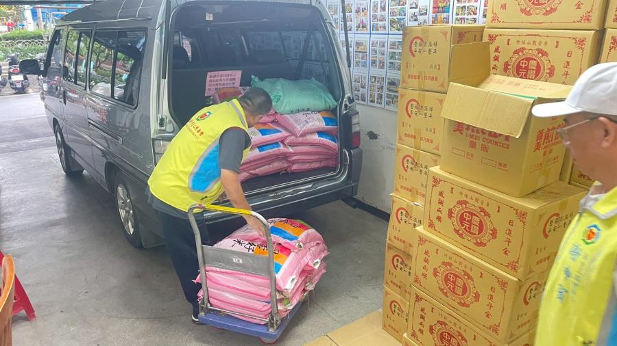 到台北市中山區 梵天閣「四面佛」(松江路)載白米800斤 [20斤/40袋] 及 普濟寺(華陰街)載白米150斤 [3斤/50包],回會所