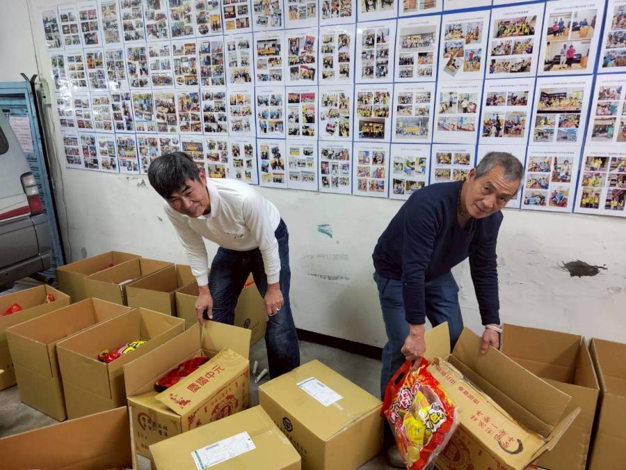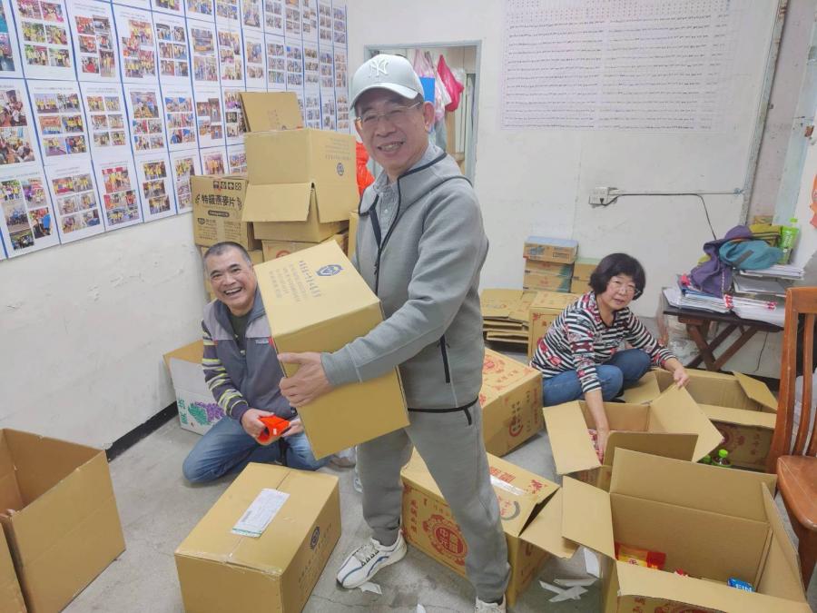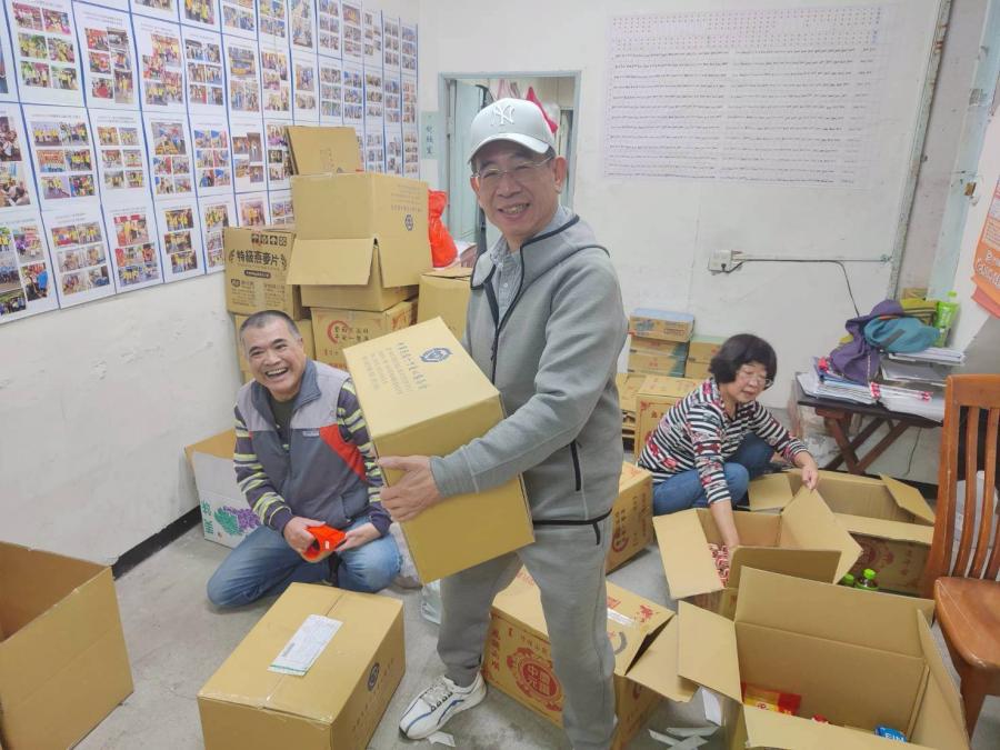 在會所打包115年1月份提供給關懷戶之外寄及自取物資