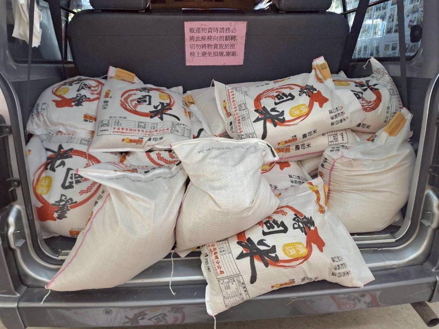 到樹林區(上帝公祖救濟會)載白米800斤回會所。